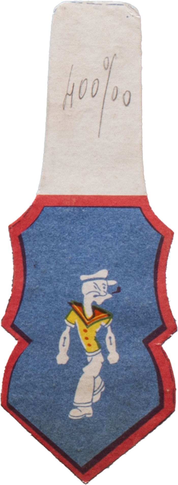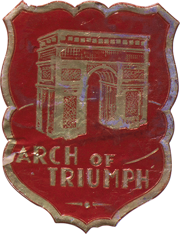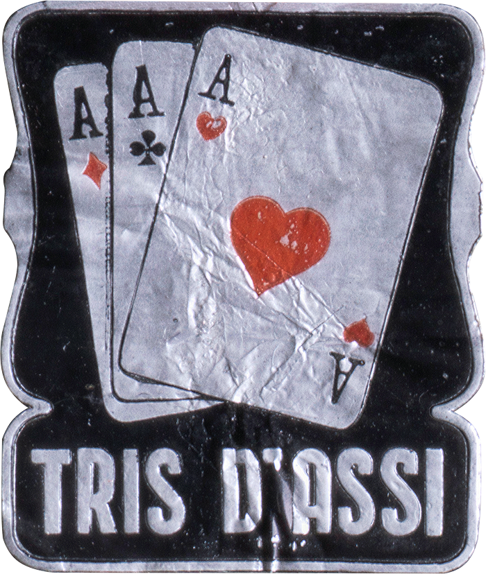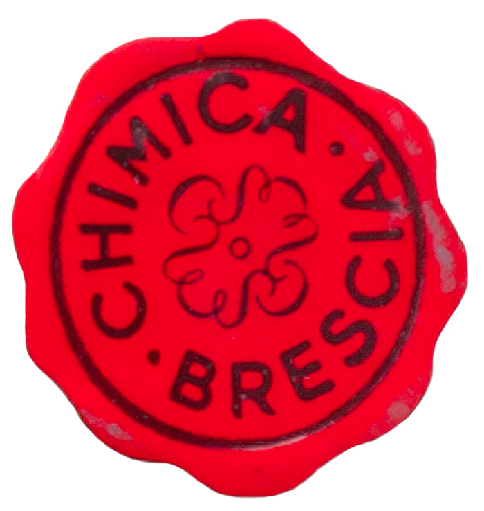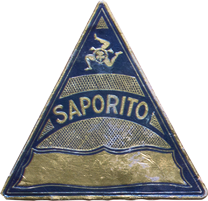 fig. 43 - Etichetta stampata su carta metallizzata oro con retro adesivo umettabile, anni '50