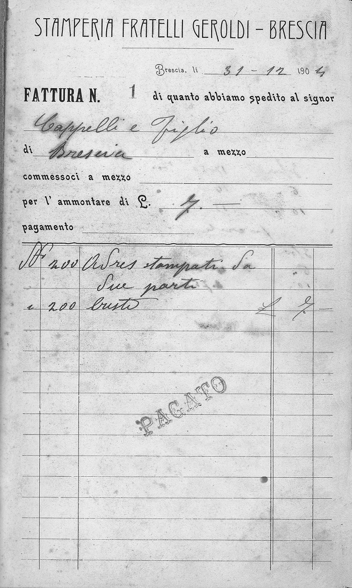 fig. 13 - 1904, Prima Fattura 31 dicembre 1904