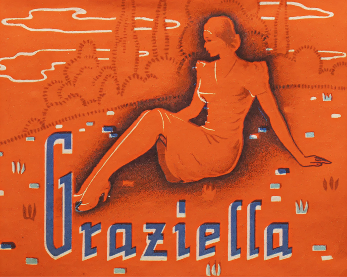 fig. 40 - Etichetta stampata a due colori su carta metallizzata oro, anni '60