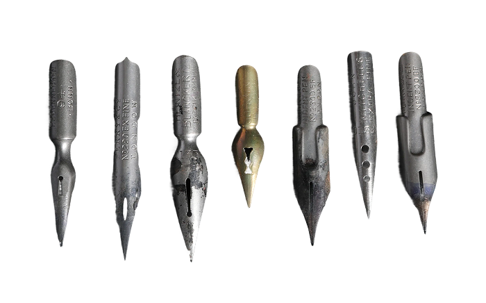 fig. 32 - Pennini metallici per scrittura a inchiostro