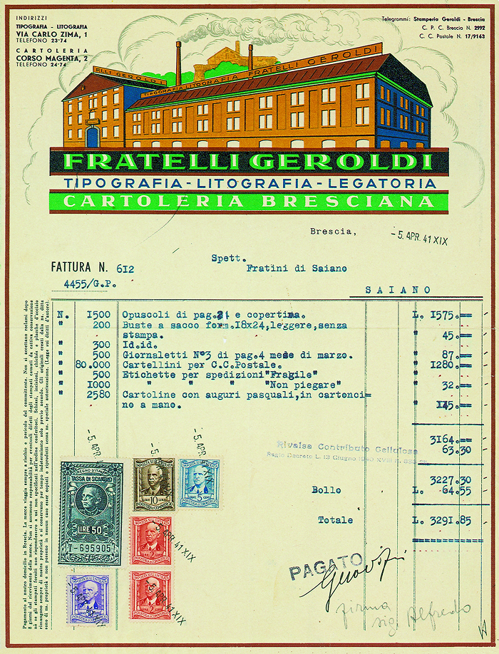 fig. 25 - 1941, Fattura ai Fratini di Saiano