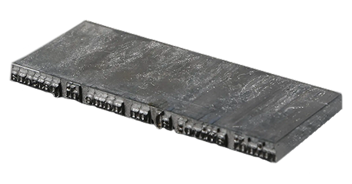 fig. 26 - Riga di testo in piombo prodotta con Linotype