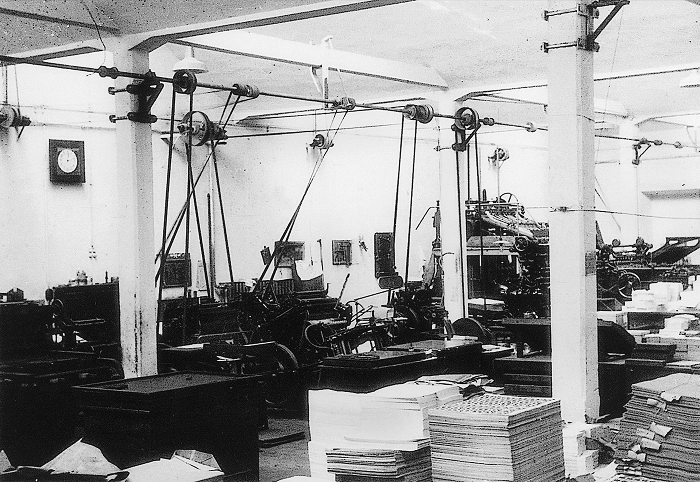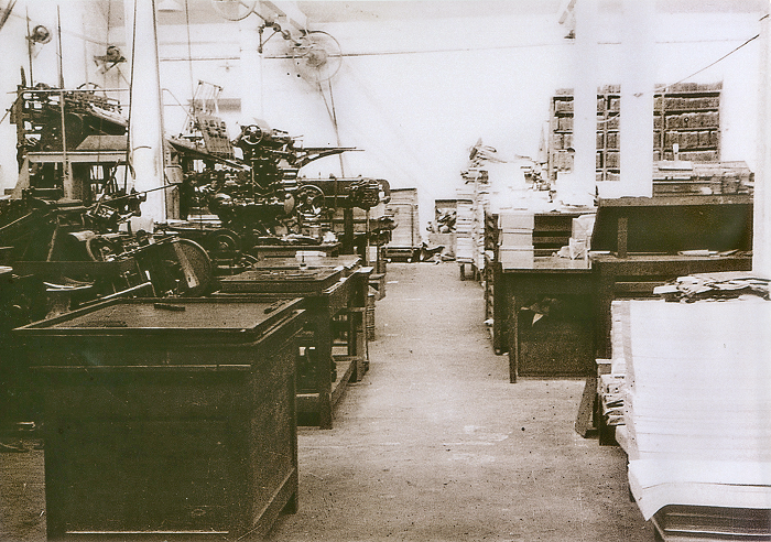 fig. 73 - 1955, Reparto stampa su pietra con torchio litografico