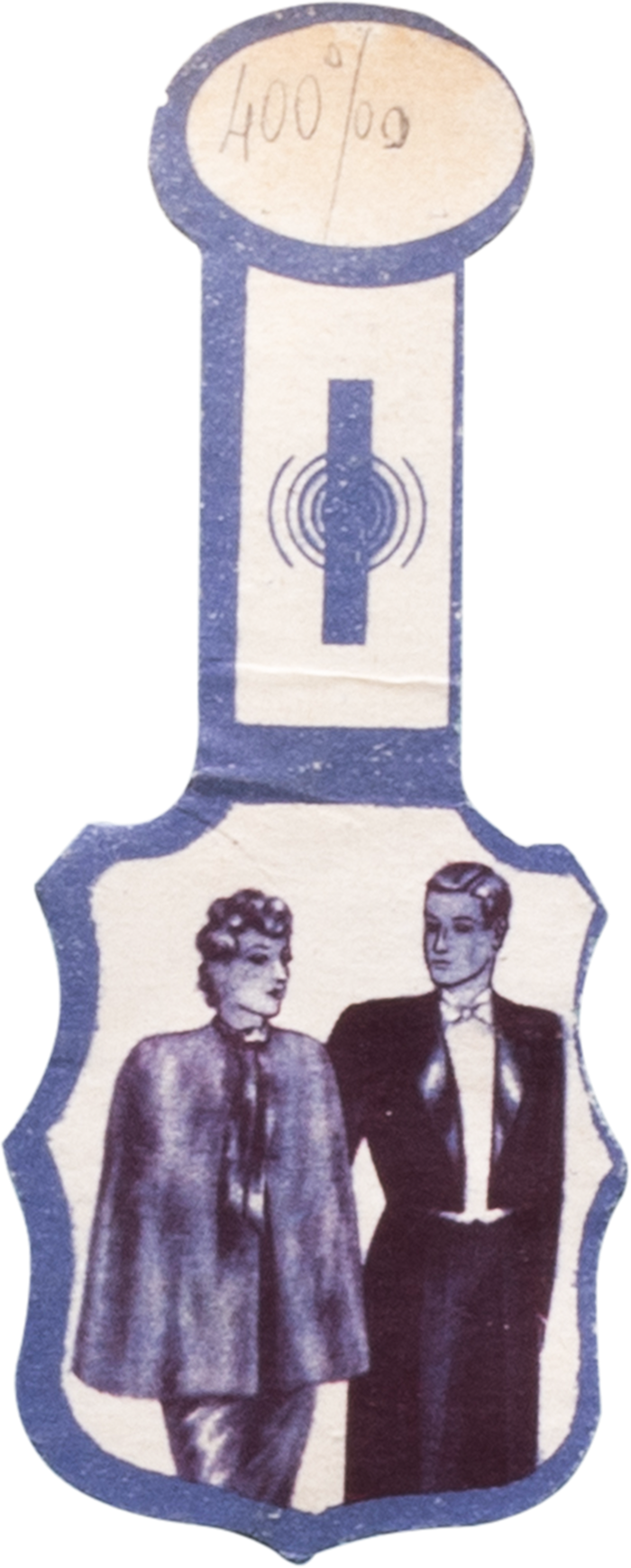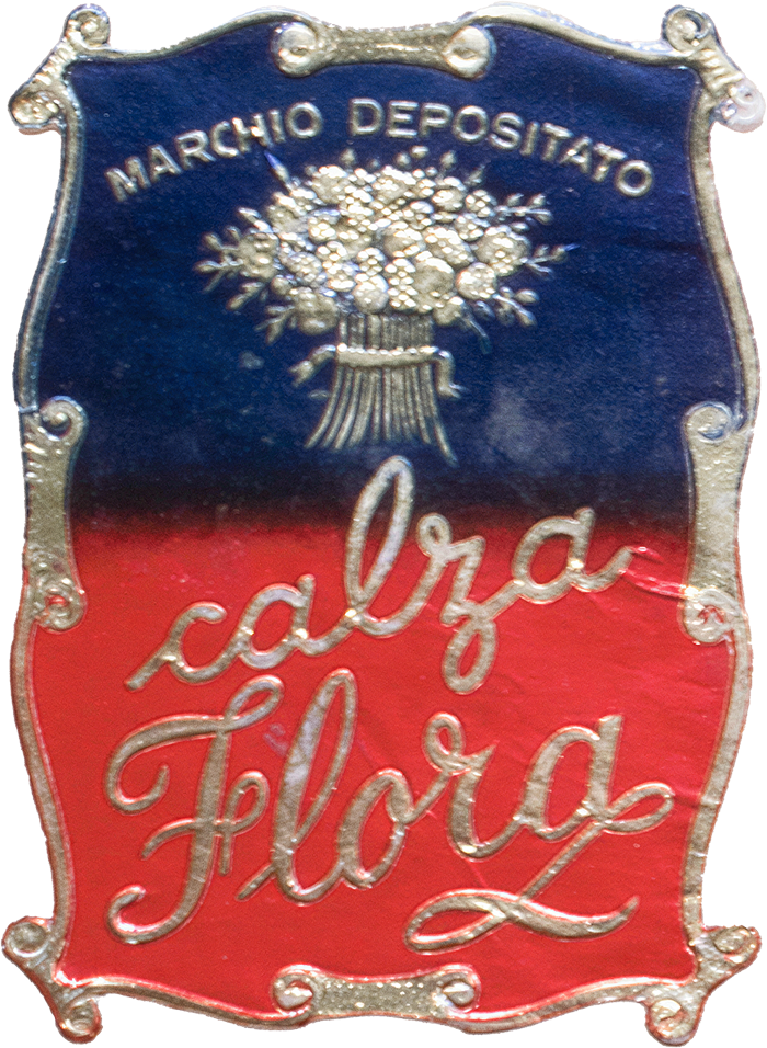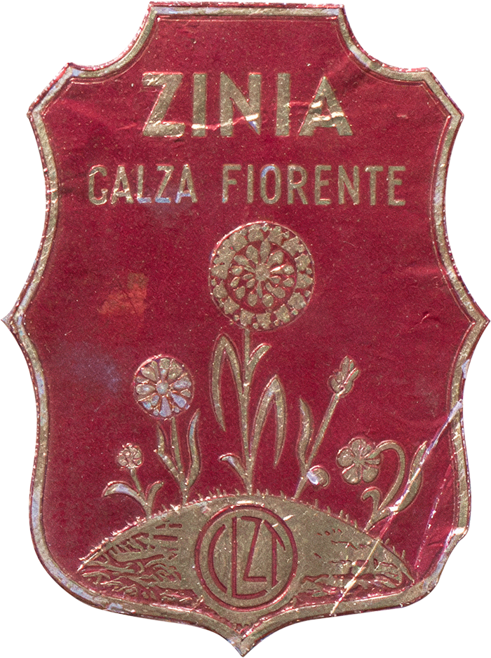 fig. 33 - Etichetta per calze stampata su carta metallizzata argento con retro adesivo umettabile, anni '50