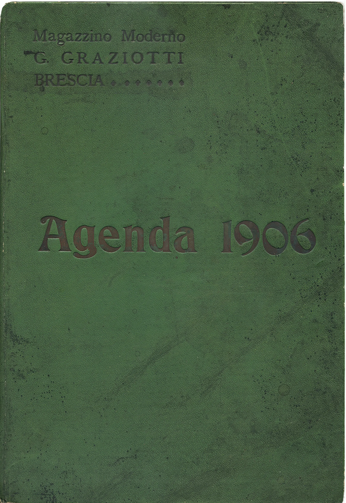 fig. 34 - 1906, Copertina - Agenda stampata per “Il Magazzino Moderno di G. Graziotti – Brescia”