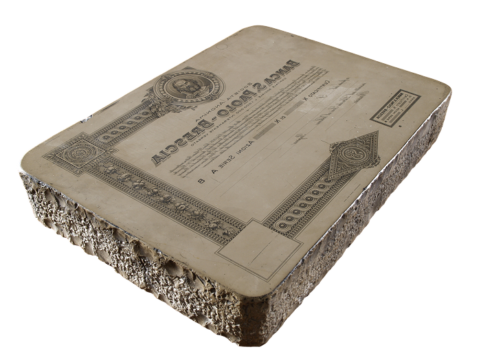 fig. 35 - Pietra litografica, utilizzata per stampare con il torchio litografico le azioni della Banca San Paolo di Brescia