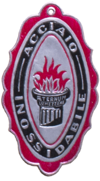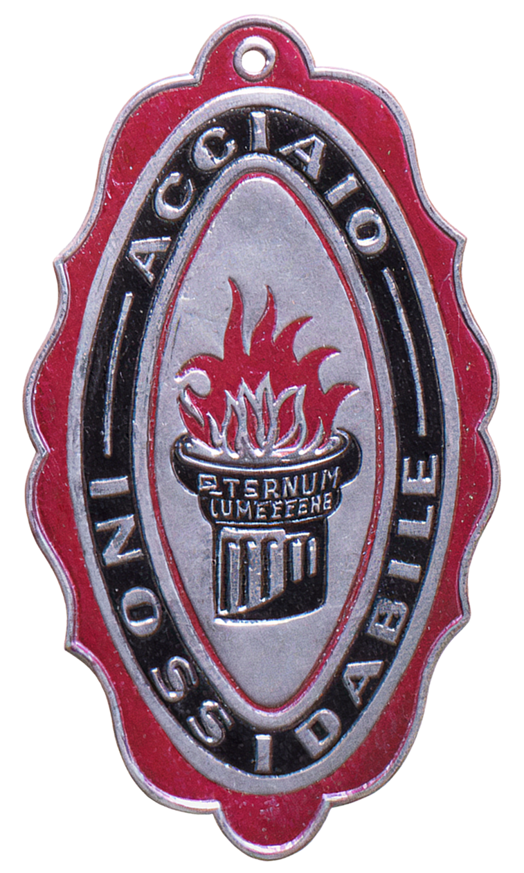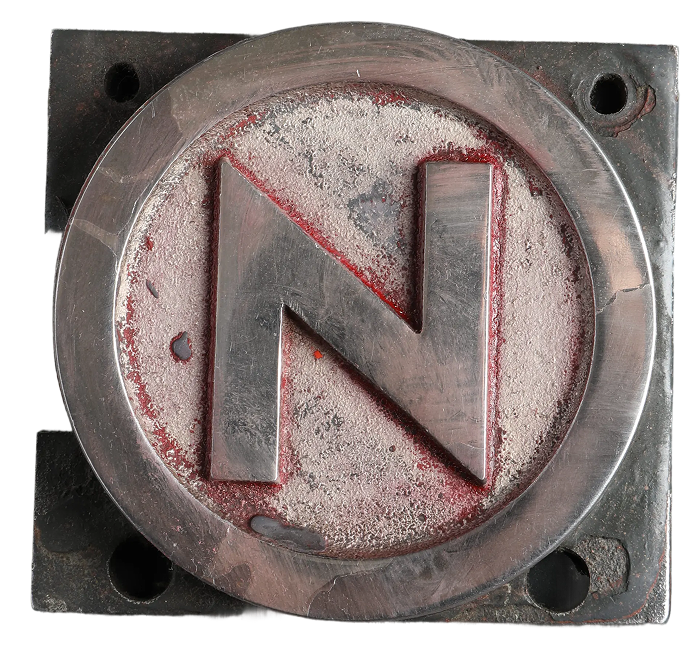 fig. 80 - Marchio in acciaio della ditta Nebiolo di Torino, fabbrica di macchine da stampa. Anni '70