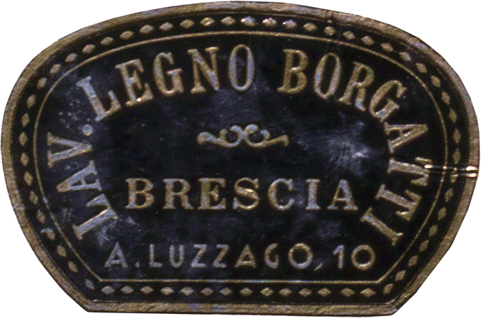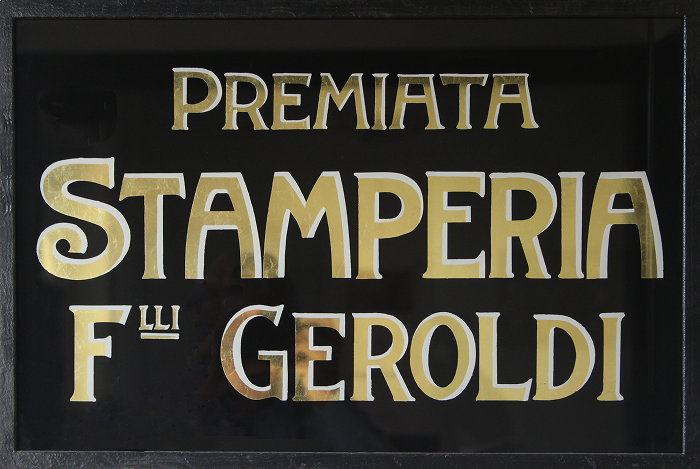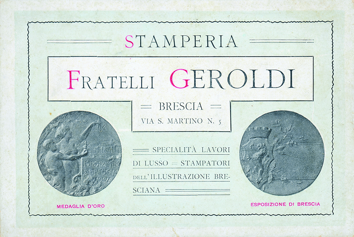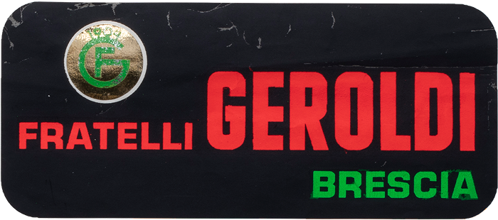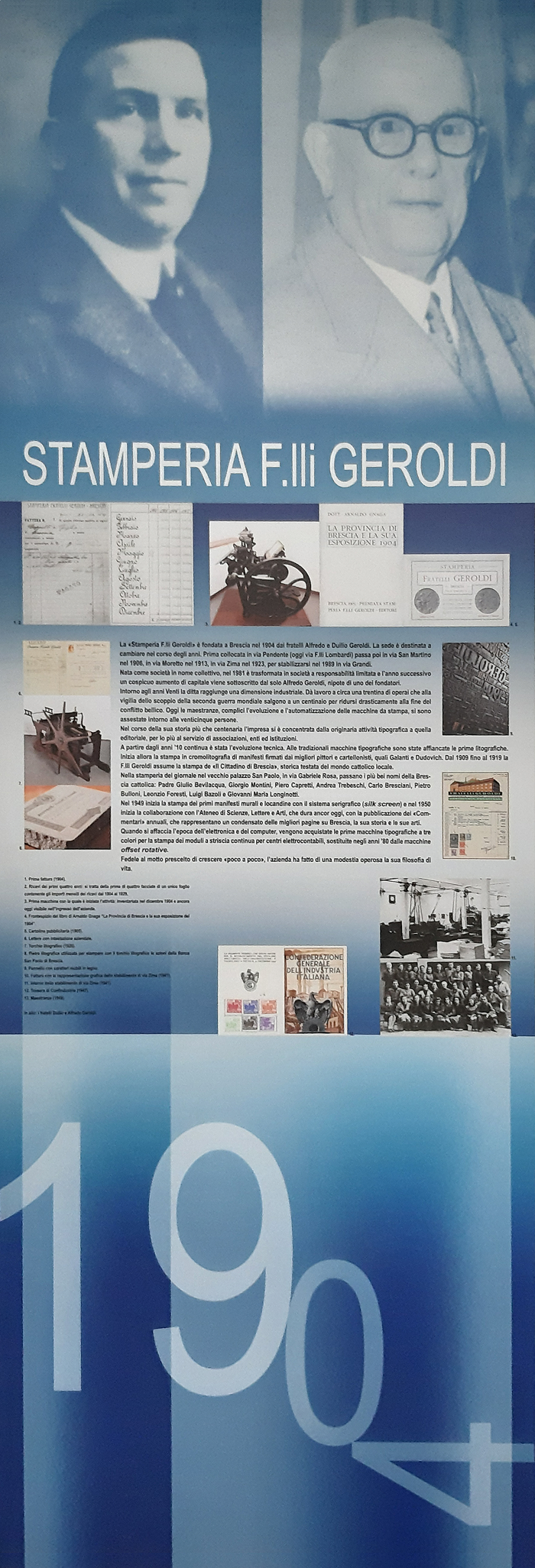 fig. 56 - 1913, Targa della ditta Geroldi affissa in via Moretto, 78. Oggi, dopo accurato restauro, attualmente presente all'ingresso dei nostri uffici. F.to cm. 60x40