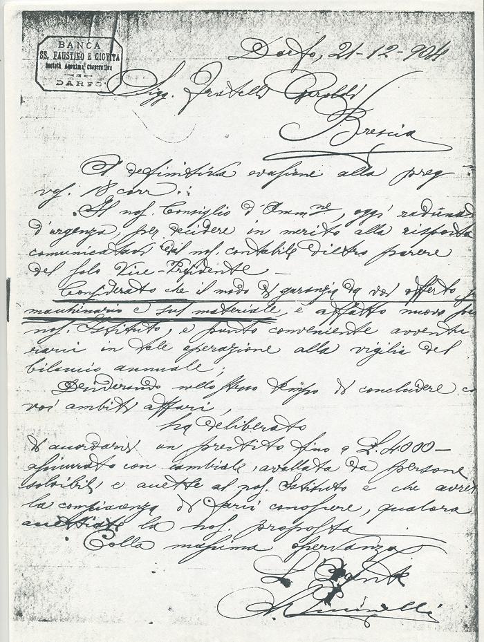 fig. 51 - 1904, Banca SS.Faustino E Giovita - documento del prestito di lire 4.000