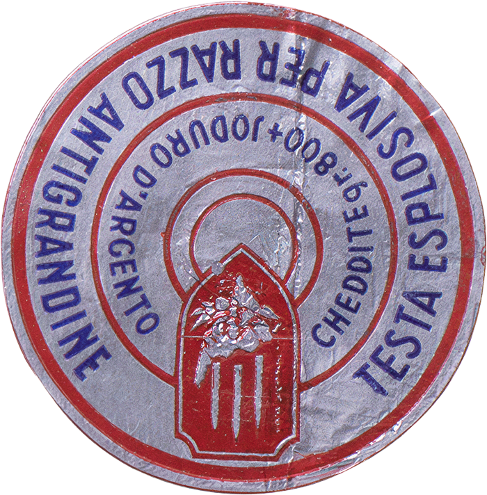 fig. 37 - Etichetta in carta metallizzata argento stampata a tre colori e rilievo per la ditta Aeternum di Lumezzane