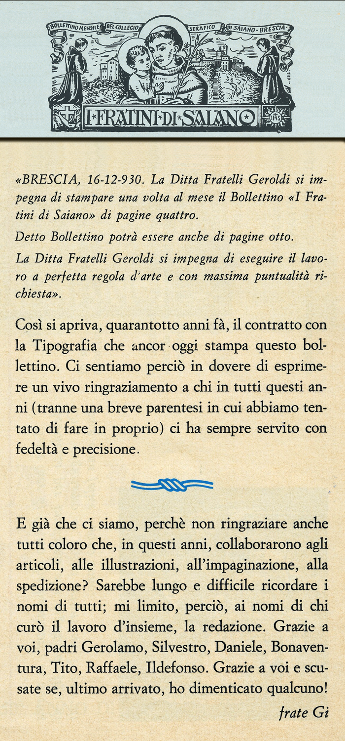 fig. 71 - 1978, "I fratini di Saiano" periodico mensile - Natale 1978 - Numero speciale per il 50° anno di pubblicazione. Citazione del contratto stipulato il 16-12-1930Â