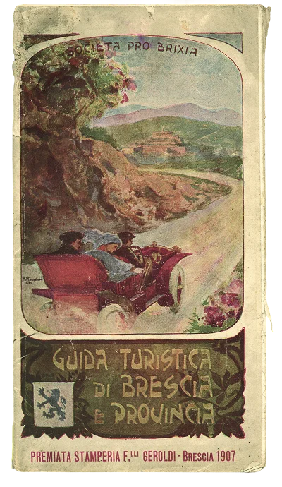 fig. 1 - 1907, Un volumetto dello Gnaga (una copia in ns. possesso) in occasione del “Circuito Automobilistico di Brescia contenente oltre alla descrizione della città una serie di 12 itinerari automobilistici consigliati nella provincia.