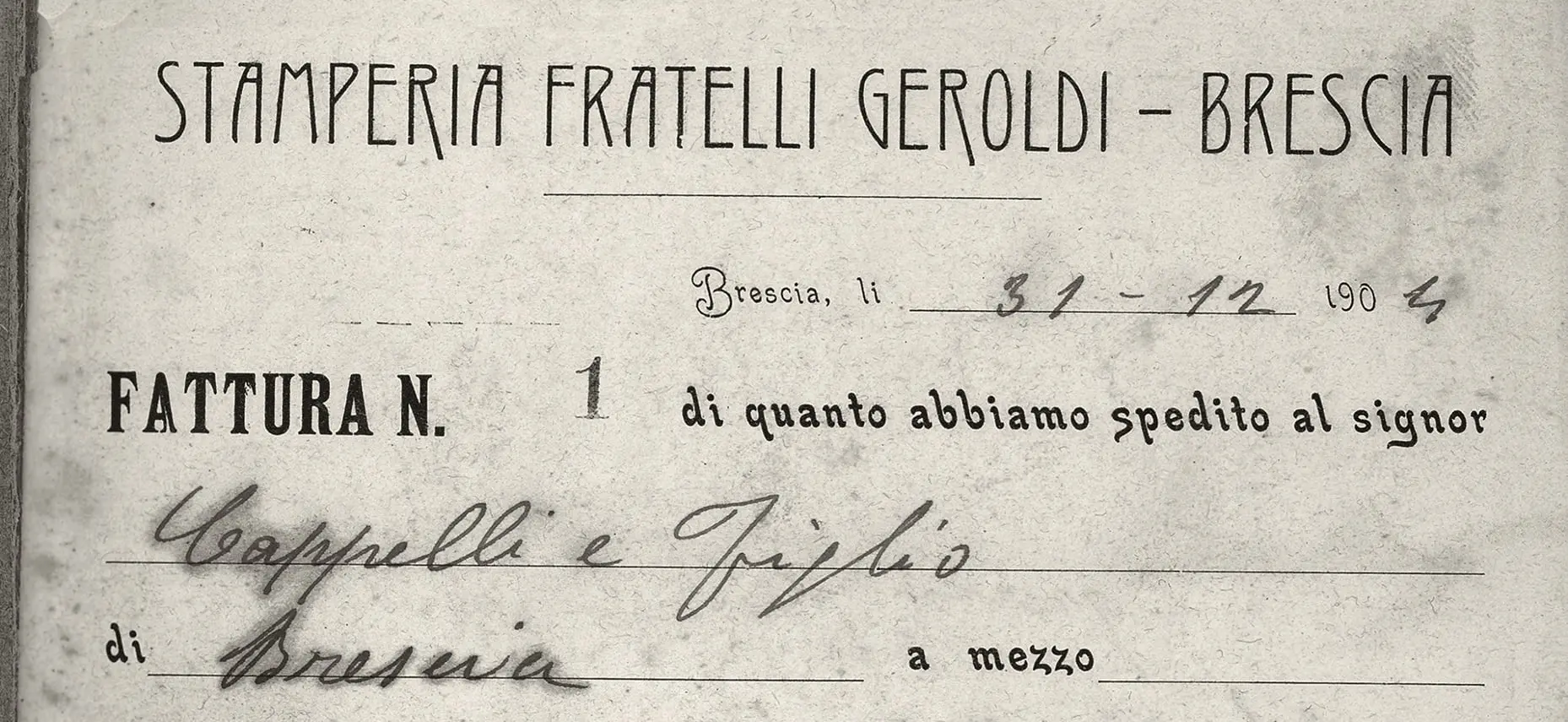 Verso la fine del 1904, dunque, i due fratelli Geroldi, forti dell’esperienza acquisita nei diversi incarichi e sostenuti da una grande passione per la loro arte, decisero di mettersi in proprio e dare vita ad una tipografia a carattere artigianale col nome di «Stamperia Fratelli Geroldi», che ebbe la sua prima sede a Brescia in via Pendente, l’attuale via Fratelli Lombardi, nella piccola rientranza, che esiste tuttora, prima di immettersi in via Gabriele Rosa. Nasce così la Ditta Fratelli Geroldi.