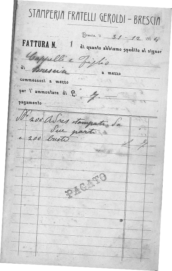 fig. 13 - 1904 - Prima Fattura 31 dicembre 1904
