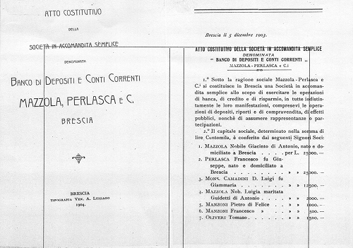 fig. 95 - 1904, Banco di Depositi e Conti Correnti Mazzola, Perlasca e C. - Atto costitutivo con elenco soci