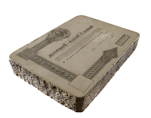 fig. 99 - Pietra litografica, utilizzata per stampare con il torchio litografico le azioni della banca San Paolo di Brescia