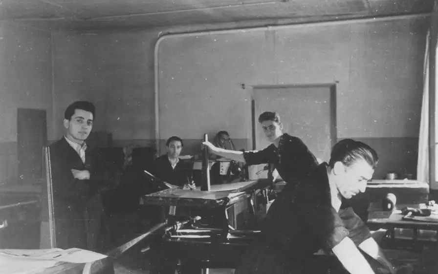 fig. 73 - 1955 - Reparto stampa su pietra con torchio litografico